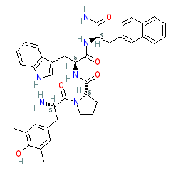 | SMILES | Cc1cc(C[C@H](N)C(=O)N2CCC[C@H]2C(=O)N[C@@H](Cc2c[nH]c3ccccc23)C(=O)N[C@H](Cc2ccc3ccccc3c2)C(N)=O)cc(C)c1O |