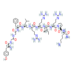| SMILES | CC[C@H](C)[C@H](NC(=O)[C@H](CCCN=C(N)N)NC(=O)[C@H](CCCN=C(N)N)NC[C@H](CC(C)C)NC(=O)[C@H](Cc1ccccc1)NC(=O)CNC(=O)CNC(=O)[C@@H](N)Cc1ccc(O)cc1)C(=O)N[C@@H](CCCN=C(N)N)C(=O)N1CCC[C@H]1C(=O)N[C@@H](CCCCN)C(N)=O |