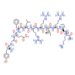 | SMILES | CC[C@H](C)[C@H](NC(=O)[C@H](CCCN=C(N)N)NC(=O)[C@H](CCCN=C(N)N)NC(=O)[C@H](CC(C)C)NC(=O)[C@H](Cc1ccccc1)NC(=O)[C@H](CCC(=O)O)NC(=O)CNC(=O)[C@@H](N)Cc1ccc(O)cc1)C(=O)N[C@@H](CCCN=C(N)N)C(=O)N1CCC[C@H]1C(=O)N[C@@H](CCCCN)C(N)=O |