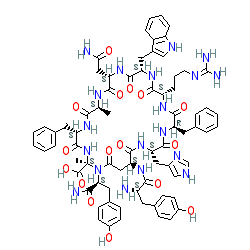 | SMILES | C[C@@H]1NC(=O)[C@H](CC(N)=O)NC(=O)[C@H](Cc2c[nH]c3ccccc23)NC(=O)[C@H](CCCN=C(N)N)NC(=O)[C@@H](Cc2ccccc2)NC(=O)[C@H](Cc2c[nH]cn2)NC(=O)[C@@H](NC(=O)[C@@H](N)Cc2ccc(O)cc2)CC(=O)N([C@@H](Cc2ccc(O)cc2)C(N)=O)[C@@](C)(C(=O)O)NC(=O)[C@H](Cc2ccccc2)NC1=O |