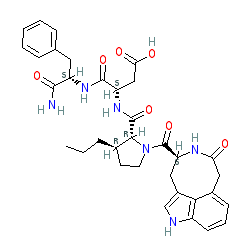 | SMILES | CCC[C@@H]1CCN(C(=O)[C@@H]2Cc3c[nH]c4cccc(c34)CC(=O)N2)[C@H]1C(=O)N[C@@H](CC(=O)O)C(=O)N[C@@H](Cc1ccccc1)C(N)=O |