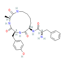 | SMILES | C[C@@H]1NC(=O)[C@H](Cc2ccc(O)cc2)NC(=O)[C@H](NC(=O)[C@@H](N)Cc2ccccc2)CCCCNC1=O |