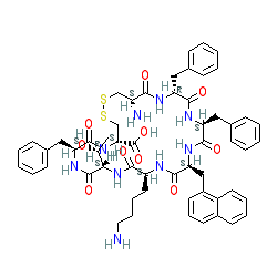 | SMILES | C[C@@H](O)[C@@H]1NC(=O)[C@H](CCCCN)NC(=O)[C@H](Cc2cccc3ccccc23)NC(=O)[C@H](Cc2ccccc2)NC(=O)[C@@H](Cc2ccccc2)NC(=O)[C@H](N)CSSC[C@H](C(=O)O)NC(=O)[C@H](Cc2ccccc2)NC1=O |