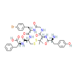 | SMILES | CC1(C)SSC[C@@H](C(=O)N[C@@H](Cc2ccccc2)C(=O)O)NC(=O)[C@H](Cc2ccc(Br)cc2)NC(=O)CNC(=O)[C@@H]1NC(=O)[C@@H](N)Cc1ccc(O)cc1 |