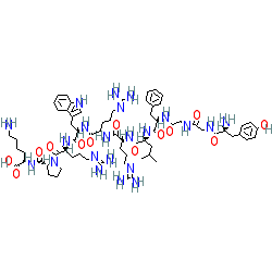 | SMILES | CC(C)C[C@H](NC(=O)[C@H](Cc1ccccc1)NC(=O)CNC(=O)CNC(=O)[C@@H](N)Cc1ccc(O)cc1)C(=O)N[C@@H](CCCN=C(N)N)C(=O)N[C@@H](CCCN=C(N)N)C(=O)N[C@H](Cc1c[nH]c2ccccc12)C(=O)N[C@@H](CCCN=C(N)N)C(=O)N1CCC[C@@H]1C(=O)N[C@@H](CCCCN)C(=O)O |