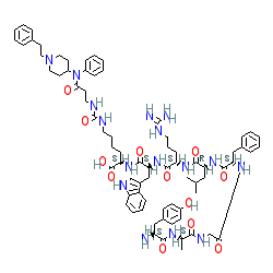 | SMILES | CC(C)C[C@@H](NC(=O)[C@H](Cc1ccccc1)NC(=O)CNC(=O)[C@H](C)NC(=O)[C@@H](N)Cc1ccc(O)cc1)C(=O)N[C@@H](CCCNC(=N)N)C(=O)N[C@@H](Cc1c[nH]c2ccccc12)C(=O)N[C@@H](CCCCNC(=O)NCCC(=O)N(c1ccccc1)C1CCN(CCc2ccccc2)CC1)C(=O)O |