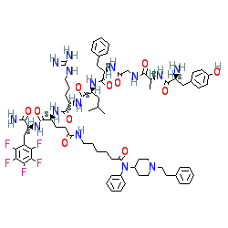 | SMILES | CC(C)C[C@H](NC(=O)[C@H](Cc1ccccc1)NC(=O)CNC(=O)[C@@H](C)NC(=O)[C@@H](N)Cc1ccc(O)cc1)C(=O)N[C@@H](CCCNC(=N)N)C(=O)N[C@@H](CCC(=O)NCCCCCC(=O)N(c1ccccc1)C1CCN(CCc2ccccc2)CC1)C(=O)N[C@@H](Cc1c(F)c(F)c(F)c(F)c1F)C(N)=O |