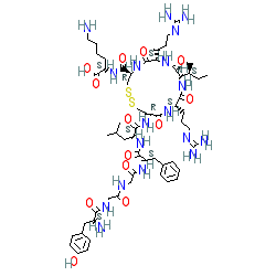 | SMILES | CC[C@H](C)[C@H]1NC(=O)[C@H](CCCN=C(N)N)NC(=O)[C@@H](NC(=O)[C@H](CC(C)C)NC(=O)[C@H](Cc2ccccc2)NC(=O)CNC(=O)CNC(=O)[C@@H](N)Cc2ccc(O)cc2)CSSC[C@@H](C(=O)N[C@@H](CCCCN)C(=O)O)NC(=O)[C@H](CCCN=C(N)N)NC1=O |