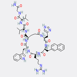 | SMILES | CC(C)[C@H](NC(=O)[C@@H](NC(=O)[C@H]1CCC(=O)N[C@@H](Cc2c[nH]cn2)C(=O)N[C@@H](Cc2ccc3ccccc3c2)C(=O)N[C@@H](CCCN=C(N)N)C(=O)N[C@H](Cc2c[nH]c3ccccc23)C(=O)N1)C(C)C)C(=O)NCC(N)=O |