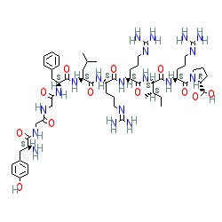 | SMILES | CC[C@H](C)[C@H](NC(=O)[C@H](CCCN=C(N)N)NC(=O)[C@H](CCCN=C(N)N)NC(=O)[C@H](CC(C)C)NC(=O)[C@H](Cc1ccccc1)NC(=O)CNC(=O)CNC(=O)[C@@H](N)Cc1ccc(O)cc1)C(=O)N[C@@H](CCCN=C(N)N)C(=O)N1CCC[C@@H]1C(=O)O |