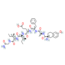 | SMILES | CC[C@H](C)[C@H](NC(=O)[C@H](CCC(=O)O)NC(=O)[C@H](Cc1ccccc1)NC(=O)[C@H](C)NC(=O)[C@]1(N)CCc2cc(O)ccc2C1)C(=O)N[C@H](C(=O)NCC(N)=O)[C@@H](C)CC |