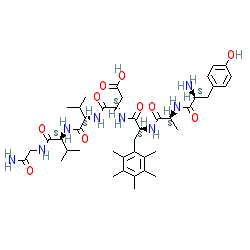 | SMILES | Cc1c(C)c(C)c(C[C@H](NC(=O)[C@H](C)NC(=O)[C@@H](N)Cc2ccc(O)cc2)C(=O)N[C@@H](CC(=O)O)C(=O)N[C@H](C(=O)N[C@H](C(=O)NCC(N)=O)C(C)C)C(C)C)c(C)c1C |