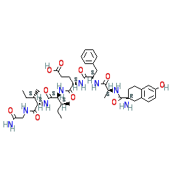 | SMILES | CC[C@H](C)[C@H](NC(=O)[C@H](CCC(=O)O)NC(=O)[C@H](Cc1ccccc1)NC(=O)[C@H](C)NC(=O)[C@@]1(N)CCc2cc(O)ccc2C1)C(=O)N[C@H](C(=O)NCC(N)=O)[C@@H](C)CC |