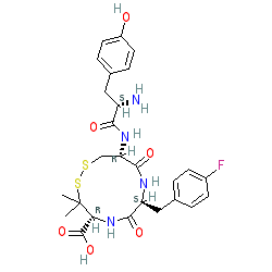 | SMILES | CC1(C)SSC[C@H](NC(=O)[C@@H](N)Cc2ccc(O)cc2)C(=O)N[C@@H](Cc2ccc(F)cc2)C(=O)N[C@@H]1C(=O)O |