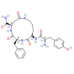 | SMILES | NC(=O)[C@H]1CC(=O)NCCC[C@@H](NC(=O)[C@@H](N)Cc2ccc(O)cc2)C(=O)N[C@@H](Cc2ccccc2)C(=O)N1 |