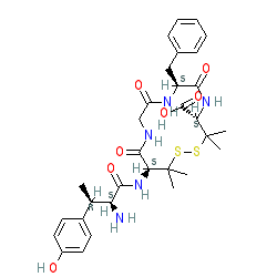 | SMILES | C[C@H](c1ccc(O)cc1)[C@H](N)C(=O)N[C@H]1C(=O)NCC(=O)N[C@@H](Cc2ccccc2)C(=O)N[C@@H](C(=O)O)C(C)(C)SSC1(C)C |