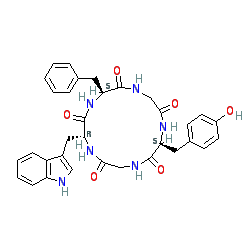 | SMILES | O=C1CNC(=O)[C@H](Cc2ccccc2)NC(=O)[C@@H](Cc2c[nH]c3ccccc23)NC(=O)CNC(=O)[C@H](Cc2ccc(O)cc2)N1 |
