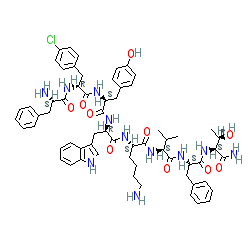 | SMILES | CC(C)[C@H](NC(=O)[C@H](CCCCN)NC(=O)[C@@H](Cc1c[nH]c2ccccc12)NC(=O)[C@H](Cc1ccc(O)cc1)NC(=O)[C@@H](Cc1ccc(Cl)cc1)NC(=O)[C@@H](N)Cc1ccccc1)C(=O)N[C@@H](Cc1ccccc1)C(=O)N[C@H](C(N)=O)[C@@H](C)O |