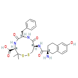 | SMILES | CC1(C)SSC[C@H](NC(=O)[C@]2(N)CCc3cc(O)ccc3C2)C(=O)N[C@@H](Cc2ccccc2)C(=O)N[C@@H]1C(=O)O |