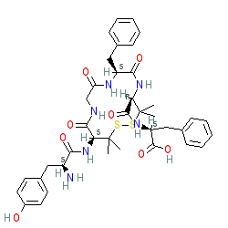 | SMILES | CC1(C)SSC(C)(C)[C@@H](C(=O)N[C@@H](Cc2ccccc2)C(=O)O)NC(=O)[C@H](Cc2ccccc2)NC(=O)CNC(=O)[C@@H]1NC(=O)[C@@H](N)Cc1ccc(O)cc1 |