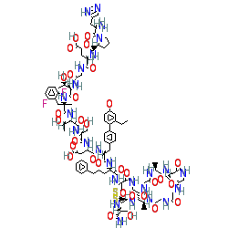 | SMILES | CCc1cc(OC)ccc1-c1ccc(C[C@H](NC(=O)[C@H](CC(=O)O)NC(=O)[C@H](CO)NC(=O)[C@@H](NC(=O)[C@](C)(Cc2c(F)cccc2F)NC(=O)[C@@H](NC(=O)CNC(=O)[C@H](CCC(=O)O)NC(=O)[C@@H]2CCCN2C(=O)[C@@H](N)Cc2cnc[nH]2)[C@@H](C)O)[C@@H](C)O)C(=O)N[C@@H](CCCc2ccccc2)C(=O)N[C@H]2CSSC[C@@H](C(=O)N[C@@H](CO)C(N)=O)NC(=O)[C@H](C)NC(=O)CNC(=O)CNC(=O)CNC(=O)[C@H](C)NC(=O)[C@H](C)NC(=O)CNC(=O)CNC2=O)cc1 |