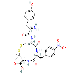 | SMILES | CC1(C)SSC[C@H](NC(=O)[C@@H](N)Cc2ccc(O)cc2)C(=O)N[C@@H](Cc2ccc([N+](=O)[O-])cc2)C(=O)N[C@@H]1C(=O)O |