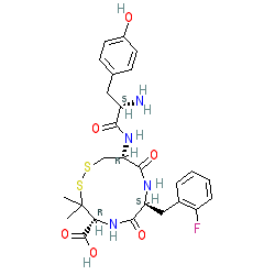 | SMILES | CC1(C)SSC[C@H](NC(=O)[C@@H](N)Cc2ccc(O)cc2)C(=O)N[C@@H](Cc2ccccc2F)C(=O)N[C@@H]1C(=O)O |