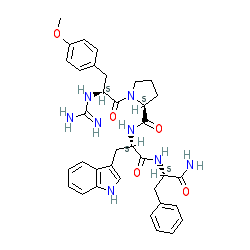 | SMILES | COc1ccc(C[C@H](NC(=N)N)C(=O)N2CCC[C@H]2C(=O)N[C@@H](Cc2c[nH]c3ccccc23)C(=O)N[C@@H](Cc2ccccc2)C(N)=O)cc1 |