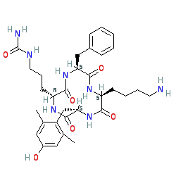 | SMILES | Cc1cc(O)cc(C)c1C[C@@H]1NC(=O)[C@H](CCCCN)NC(=O)[C@H](Cc2ccccc2)NC(=O)[C@@H](CCCNC(N)=O)NC1=O |