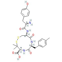 | SMILES | Cc1ccc(C[C@@H]2NC(=O)[C@@H](NC(=O)[C@@H](N)Cc3ccc(O)cc3)CSSC(C)(C)[C@@H](C(=O)O)NC2=O)cc1 |