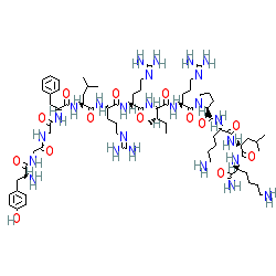| SMILES | CC[C@H](C)[C@H](NC(=O)[C@H](CCCN=C(N)N)NC(=O)[C@H](CCCN=C(N)N)NC(=O)[C@H](CC(C)C)NC(=O)[C@H](Cc1ccccc1)NC(=O)CNC(=O)CNC(=O)[C@@H](N)Cc1ccc(O)cc1)C(=O)N[C@@H](CCCN=C(N)N)C(=O)N1CCC[C@H]1C(=O)N[C@@H](CCCCN)C(=O)N[C@@H](CC(C)C)C(=O)N[C@@H](CCCCN)C(N)=O |