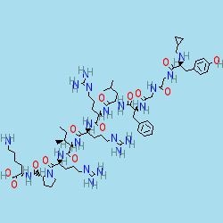 | SMILES | CC[C@H](C)[C@H](NC(=O)[C@H](CCCN=C(N)N)NC(=O)[C@H](CCCN=C(N)N)NC(=O)[C@H](CC(C)C)NC(=O)[C@H](Cc1ccccc1)NC(=O)CNC(=O)CNC(=O)[C@H](Cc1ccc(O)cc1)NCC1CC1)C(=O)N[C@@H](CCCN=C(N)N)C(=O)N1CCC[C@@H]1C(=O)N[C@@H](CCCCN)C(=O)O |