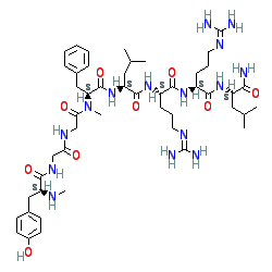 | SMILES | CN[C@@H](Cc1ccc(O)cc1)C(=O)NCC(=O)NCC(=O)N(C)[C@@H](Cc1ccccc1)C(=O)N[C@@H](CC(C)C)C(=O)N[C@@H](CCCN=C(N)N)C(=O)N[C@@H](CCCN=C(N)N)C(=O)N[C@@H](CC(C)C)C(N)=O |