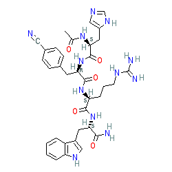 | SMILES | CC(=O)N[C@@H](Cc1cnc[nH]1)C(=O)N[C@H](Cc1ccc(C#N)cc1)C(=O)N[C@@H](CCCNC(=N)N)C(=O)N[C@@H](Cc1c[nH]c2ccccc12)C(N)=O |