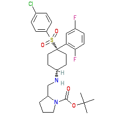 | SMILES | CC(C)(C)OC(=O)N1CCCC1CN[C@H]1CC[C@@](c2cc(F)ccc2F)(S(=O)(=O)c2ccc(Cl)cc2)CC1 |