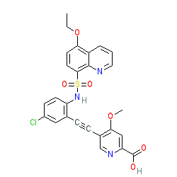 | SMILES | CCOc1ccc(S(=O)(=O)Nc2ccc(Cl)cc2C#Cc2cnc(C(=O)O)cc2OC)c2ncccc12 |