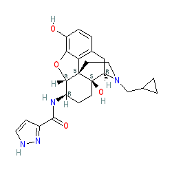 | SMILES | O=C(N[C@@H]1CC[C@@]2(O)[C@H]3Cc4ccc(O)c5c4[C@@]2(CCN3CC2CC2)[C@H]1O5)c1cc[nH]n1 |