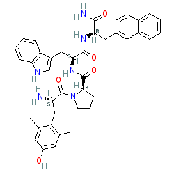 | SMILES | Cc1cc(O)cc(C)c1C[C@H](N)C(=O)N1CCC[C@@H]1C(=O)N[C@@H](Cc1c[nH]c2ccccc12)C(=O)N[C@H](Cc1ccc2ccccc2c1)C(N)=O |
