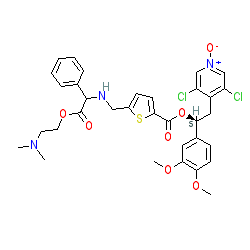 | SMILES | COc1ccc([C@H](Cc2c(Cl)c[n+]([O-])cc2Cl)OC(=O)c2ccc(CNC(C(=O)OCCN(C)C)c3ccccc3)s2)cc1OC |