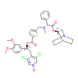 | SMILES | COc1ccc([C@H](Cc2c(Cl)c[n+]([O-])cc2Cl)OC(=O)c2ccc(CN(C)C(C(=O)O[C@H]3CN4CCC3CC4)c3ccccc3)s2)cc1OC |
