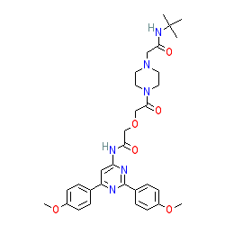 | SMILES | COc1ccc(-c2cc(NC(=O)COCC(=O)N3CCN(CC(=O)NC(C)(C)C)CC3)nc(-c3ccc(OC)cc3)n2)cc1 |