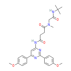 | SMILES | COc1ccc(-c2cc(NC(=O)CCC(=O)N(C)CC(=O)NC(C)(C)C)nc(-c3ccc(OC)cc3)n2)cc1 |