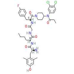 | SMILES | CCCC[C@@H](NC(=O)[C@@H](N)Cc1c(C)cc(O)cc1C)C(=O)NCC(=O)N[C@@H](Cc1ccc(F)cc1)C(=O)N1CCC(N(C(=O)CC)c2ccc(Cl)c(Cl)c2)CC1 |