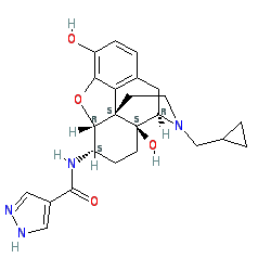 | SMILES | O=C(N[C@H]1CC[C@@]2(O)[C@H]3Cc4ccc(O)c5c4[C@@]2(CCN3CC2CC2)[C@H]1O5)c1cn[nH]c1 |
