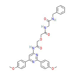 | SMILES | COc1ccc(-c2cc(NC(=O)COCC(=O)NCC(=O)NCc3ccccc3)nc(-c3ccc(OC)cc3)n2)cc1 |