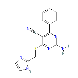 | SMILES | N#Cc1c(SCc2ncc[nH]2)nc(N)nc1-c1ccccc1 |