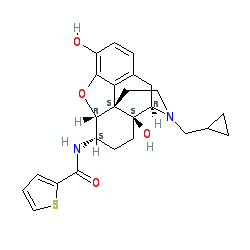 | SMILES | O=C(N[C@H]1CC[C@@]2(O)[C@H]3Cc4ccc(O)c5c4[C@@]2(CCN3CC2CC2)[C@H]1O5)c1cccs1 |