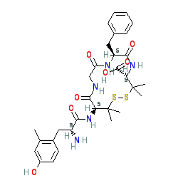 | SMILES | Cc1cc(O)ccc1C[C@@H](N)C(=O)N[C@H]1C(=O)NCC(=O)N[C@@H](Cc2ccccc2)C(=O)N[C@@H](C(=O)O)C(C)(C)SSC1(C)C |
