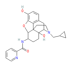 | SMILES | C1CC1CN2CCC34C5C(CCC3(C2CC6=C4C(=C(C=C6)O)O5)O)NC(=O)C7=CC=CC=N7 |