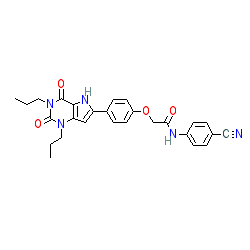 | SMILES | CCCN1C2=C(C(=O)N(C1=O)CCC)NC(=C2)C3=CC=C(C=C3)OCC(=O)NC4=CC=C(C=C4)C#N |